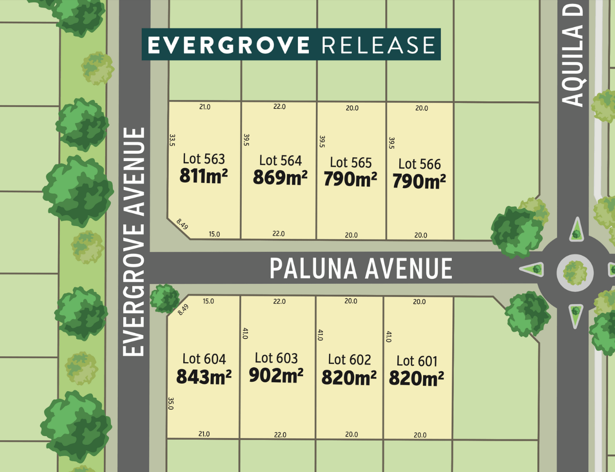 - Allotments ranging in size from 1021m2 – 2046m2